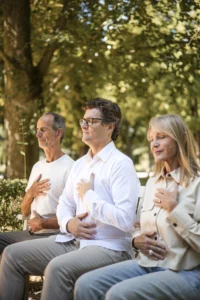 - Atemübung für das Hier und Jetzt: Täglich einige Minuten in aufrechter Sitzhaltung ein- und ausatmen, sich auf den Luftstrom konzentrieren und Gedanken kommen und gehen lassen – so kann Stress reduziert und die Präsenz gestärkt werden.